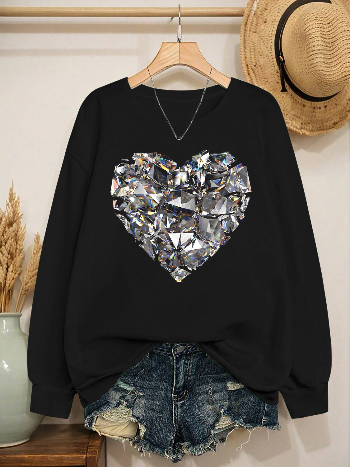 Women's Heart Cut Diamond Pattern Print Casual Sweatshirt