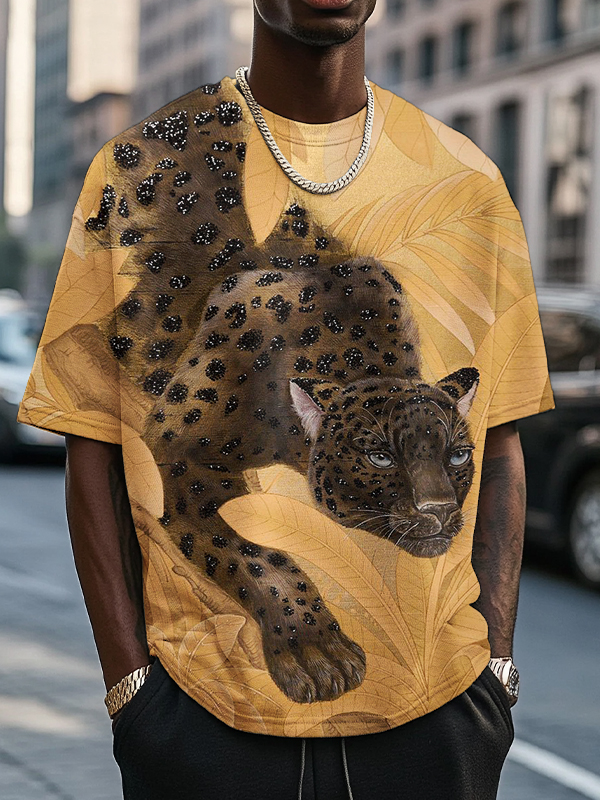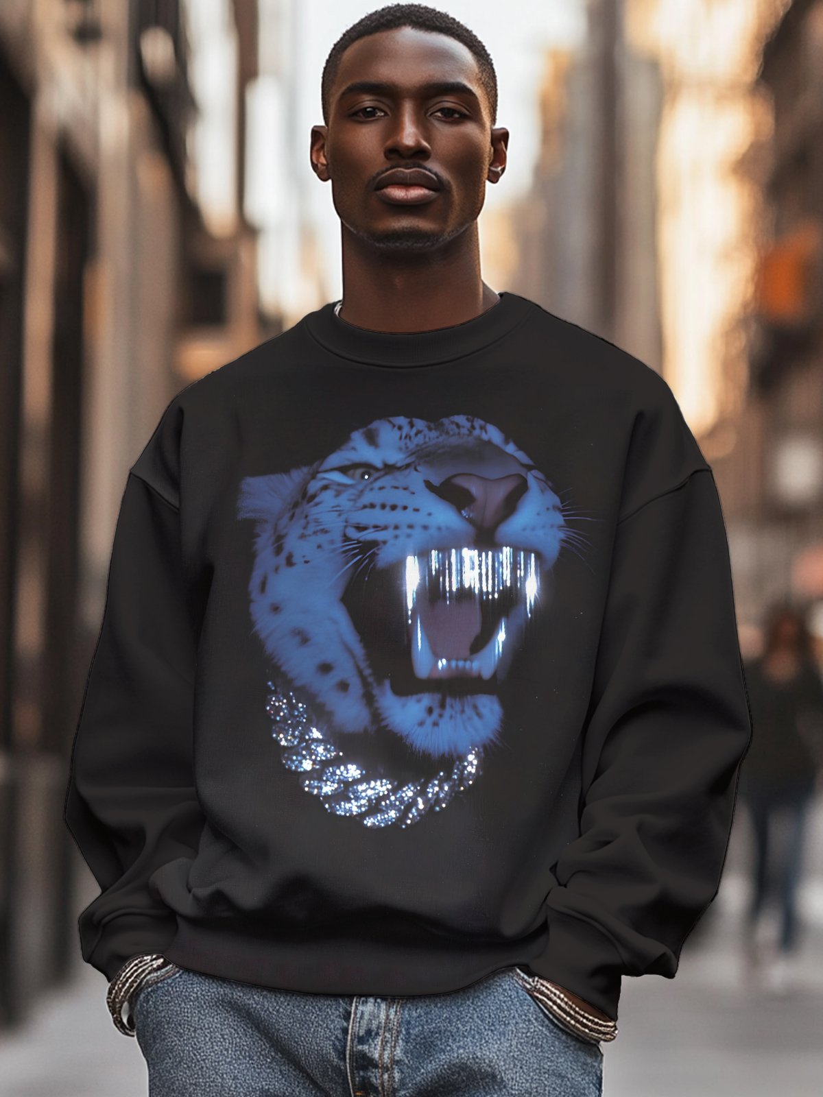 Men's Shining Diamond Roaring Leopard Art Print Casual Sweatshirt