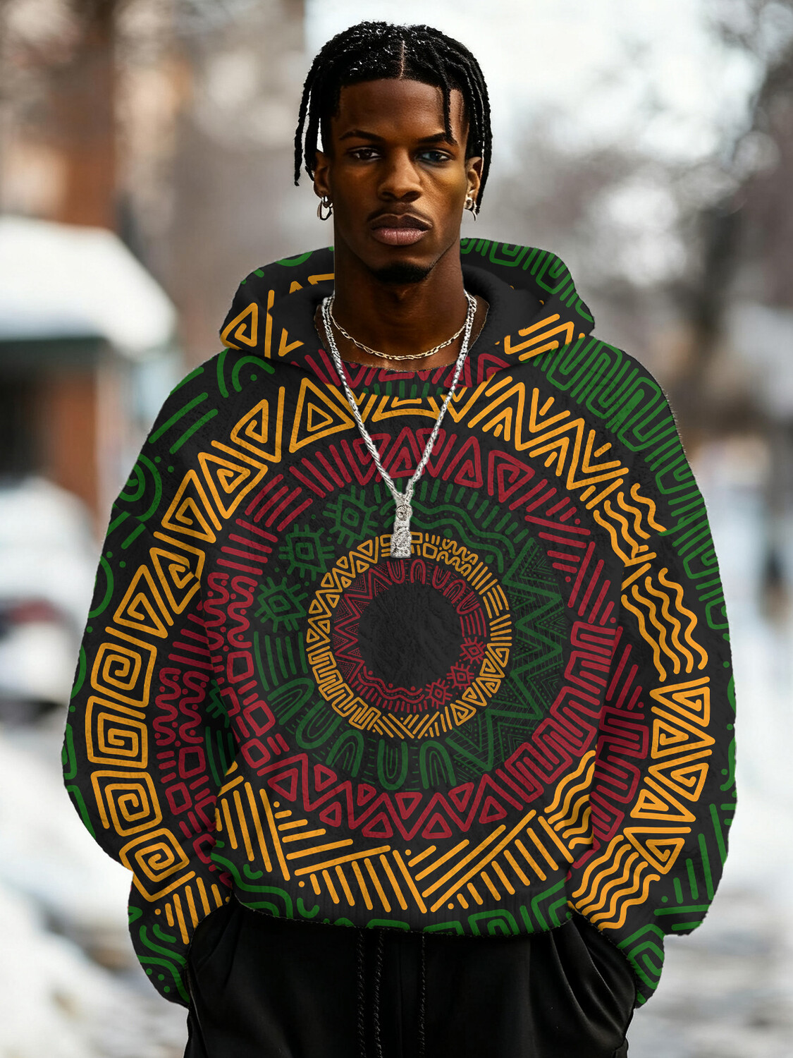 Men's Abstract Geometric Ethnic Pattern Totem Art Print Casual Hooded Knit Sweatshirt