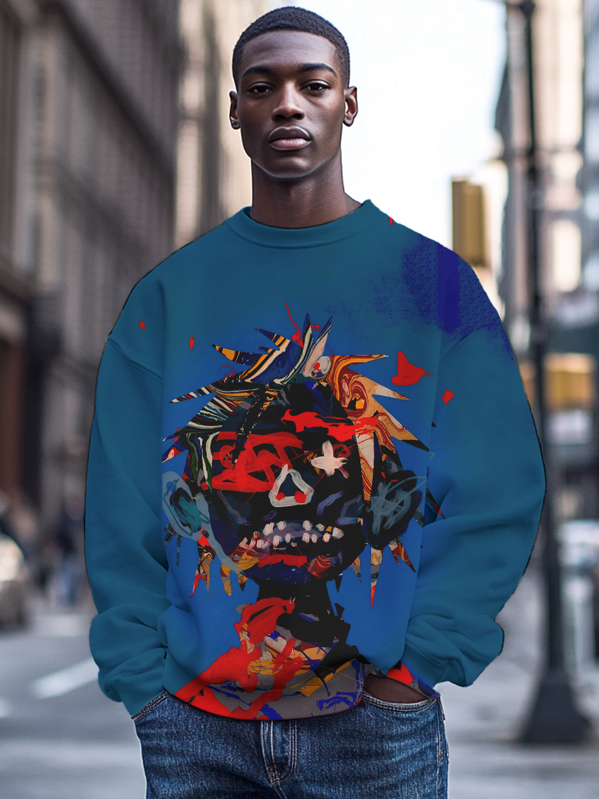 Men's Funny Abstract Graffiti Black Face Portrait Art Print Casual Sweatshirt