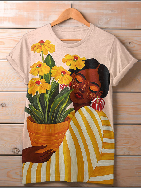 Women's Cartoon Flowers Graphic Print Casual Knit Sweatshirt