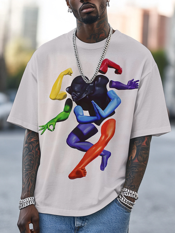 Men's Fun Abstract Human Figures Print Casual T-Shirt