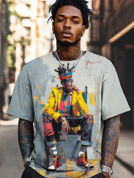 Men's Colorful Artistic Portrait Print T-Shirt