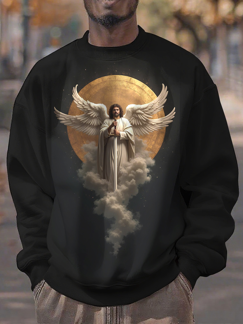 Men's Winged Angel Holding A Sword In The Sky Art Print Casual Sweatshirt
