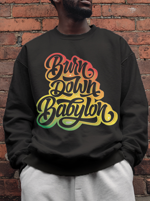 Men's Burn Down Babylon Print Cotton Casual Sweatshirt