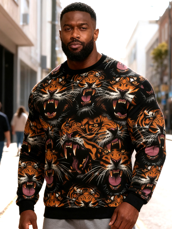Men's All Over Roaring Tiger Print Casual Sweatshirt