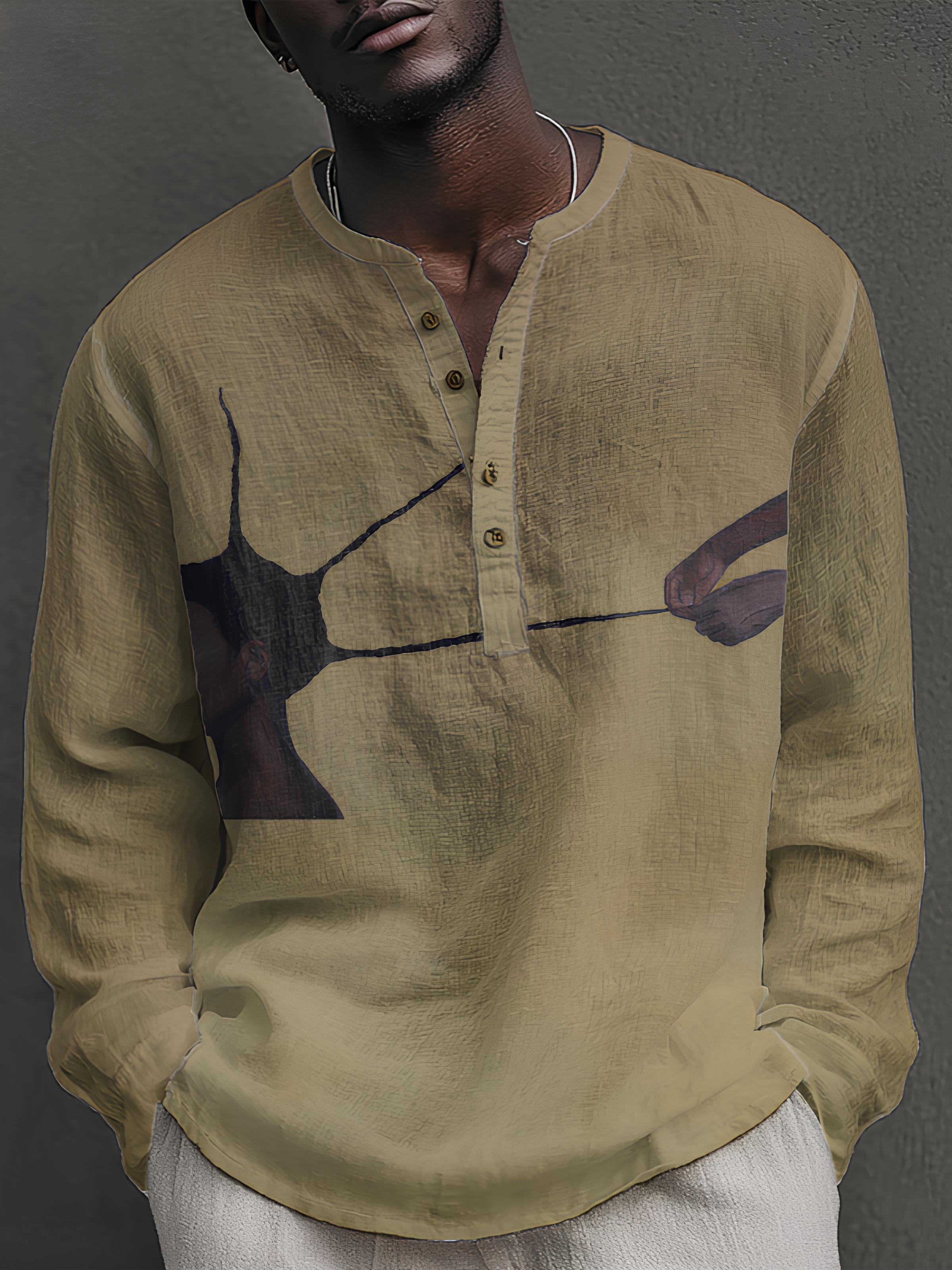 Men's Funny Braid Print Half Button Shirt