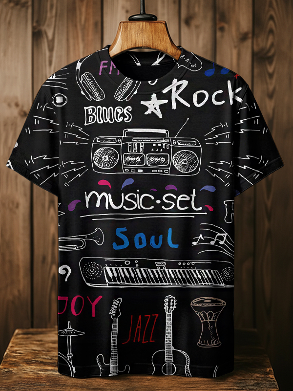 Men's Joy Jazz Blues Rock Soul Music Set Print Casual T-Shirt