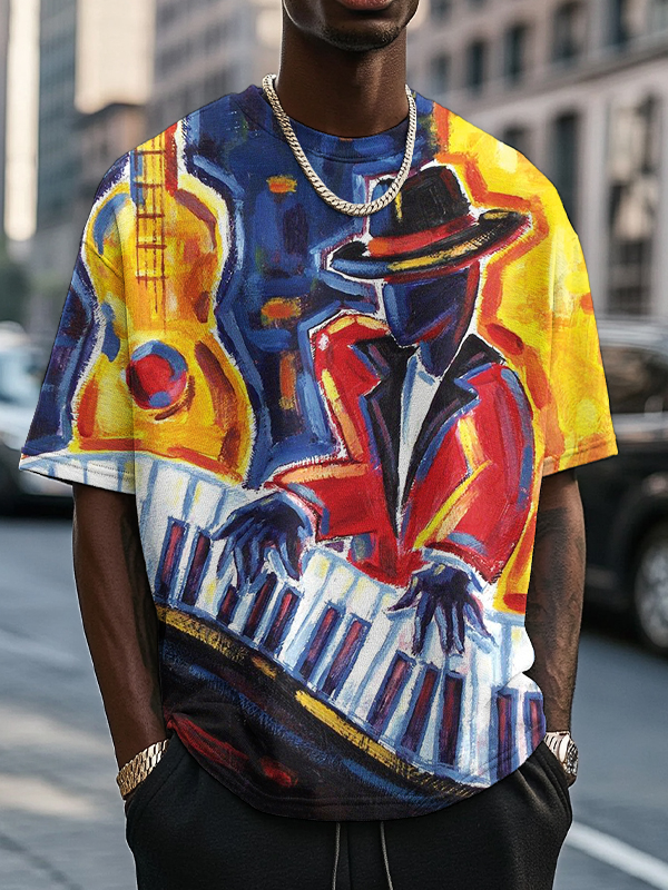 Men's Piano Artist Oil Painting Art Print Casual T-Shirt