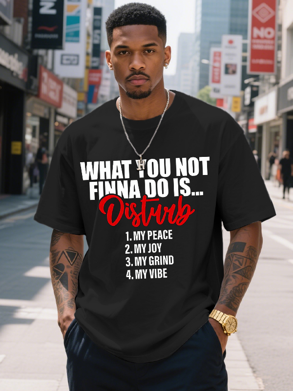 Men's What You Not Finna Do Is Disturb My Peace Joy Grind Vibe Print Cotton Casual T-Shirt