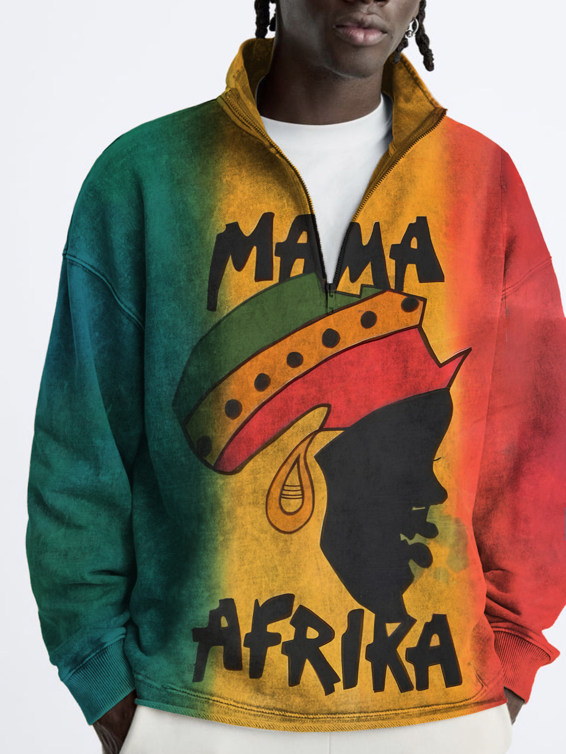 Men's Mama Afrika Color Block Art Print Half Zip Sweatshirt