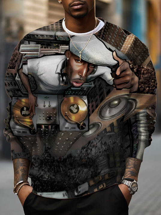 Men's Black DJ Art Print Casual Sweatshirt
