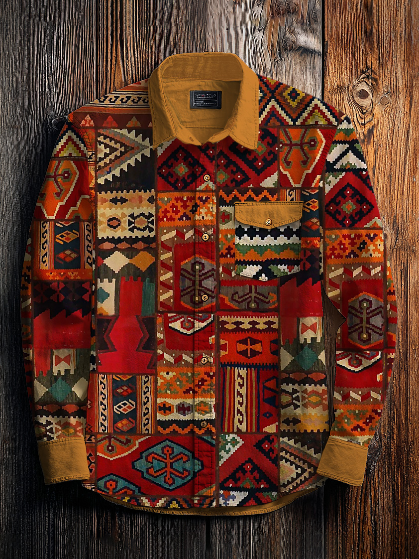 Men's Retro Classic Ethnic Pattern Art Print Long Sleeve Pocket Shirt