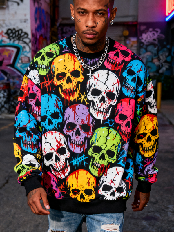 Men's Day Of The Dead Colorful Skull Graffiti Dark Art Print Casual Sweatshirt