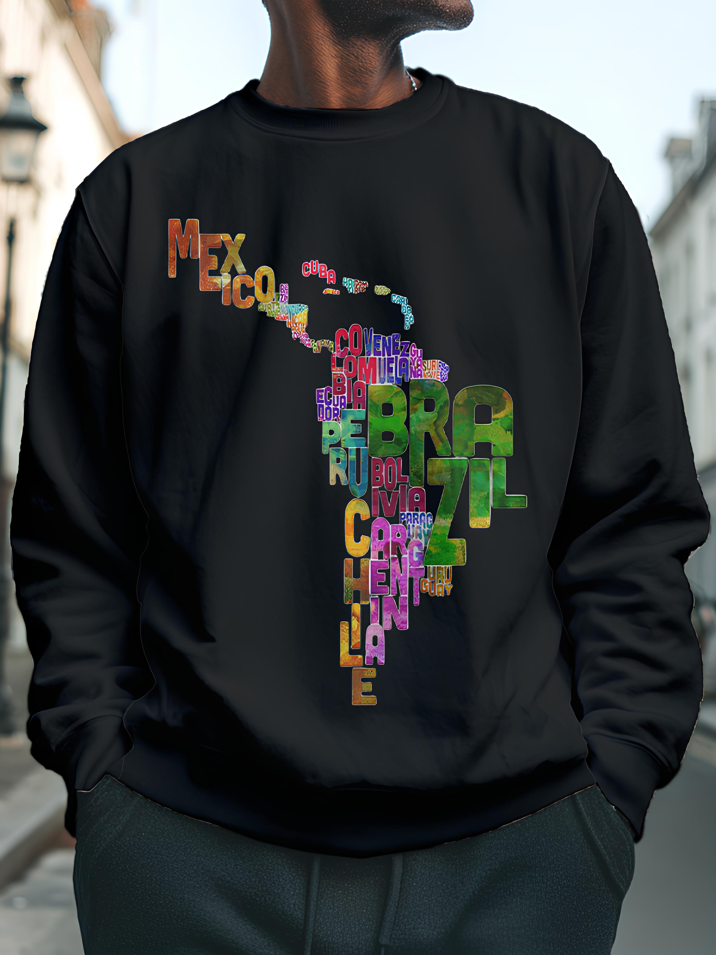 Men's Typography Map Of Central And South America Print Cotton Casual Sweatshirt