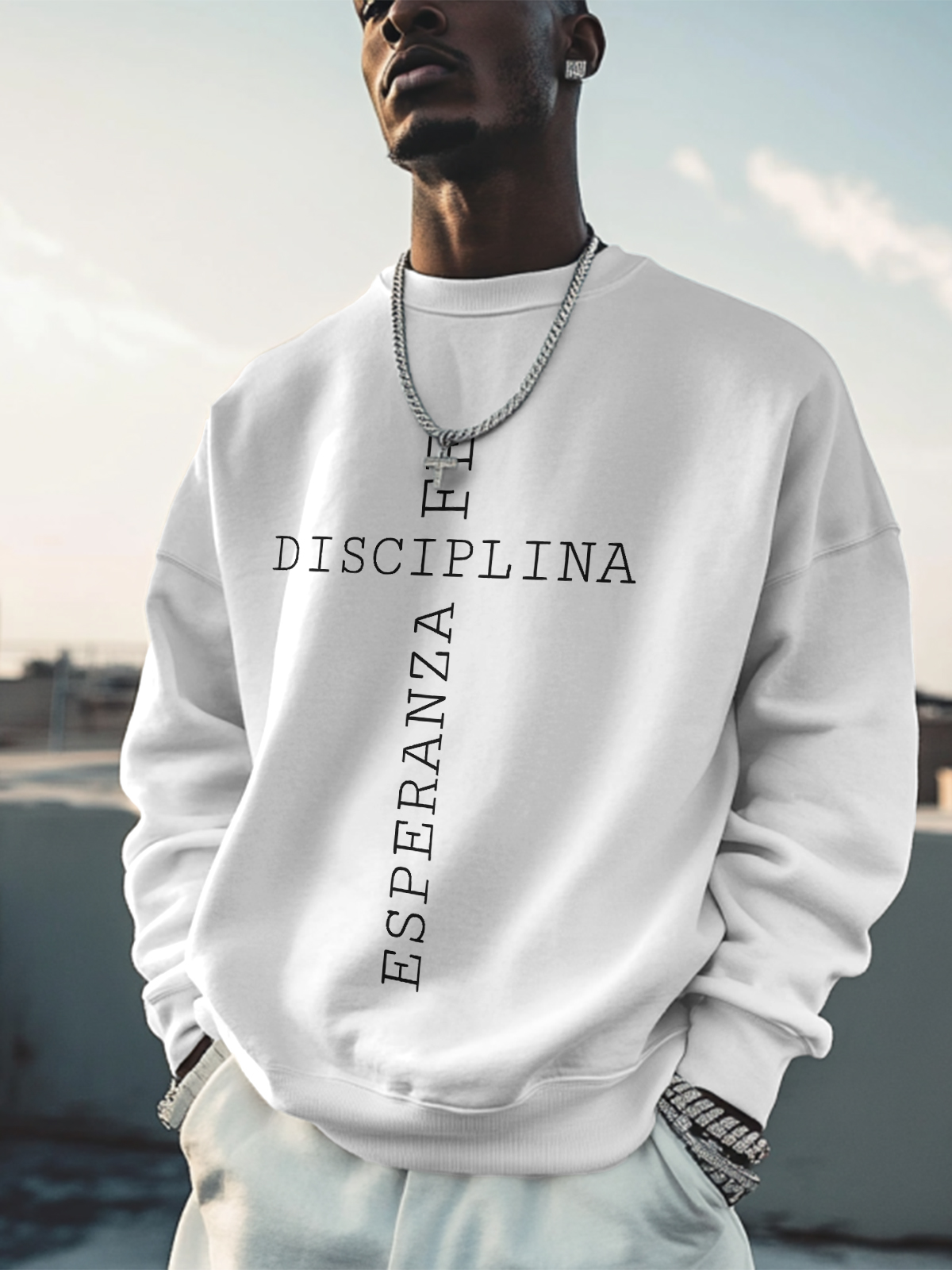 Men's Faith Discipline Hope Cross Pattern Art Print Cotton Casual Sweatshirt
