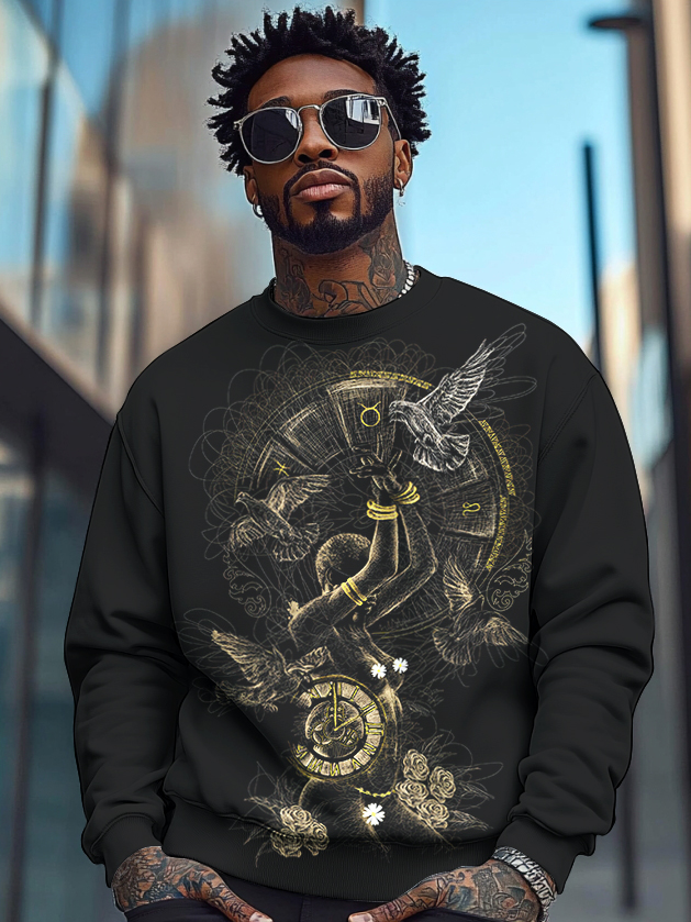 Men's Retro Goddess Pigeon Sketch Illustration Print Casual Sweatshirt
