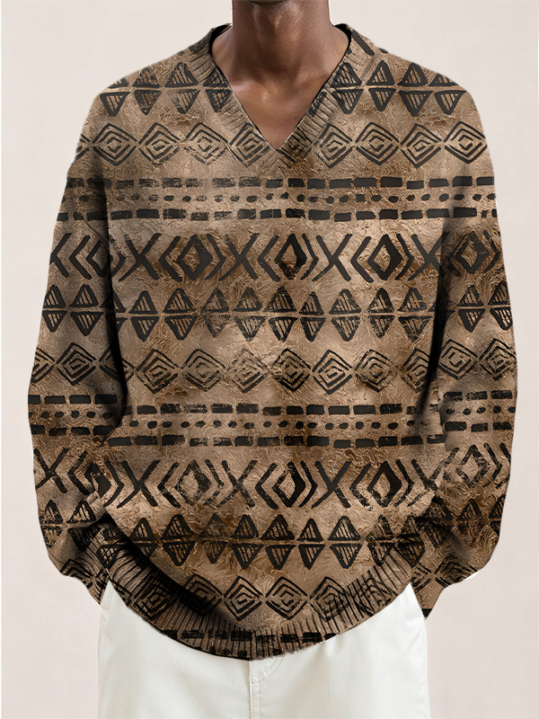 Men's Retro Tribal Geometric Patterns Art Print V Neck Knit Sweatshirt