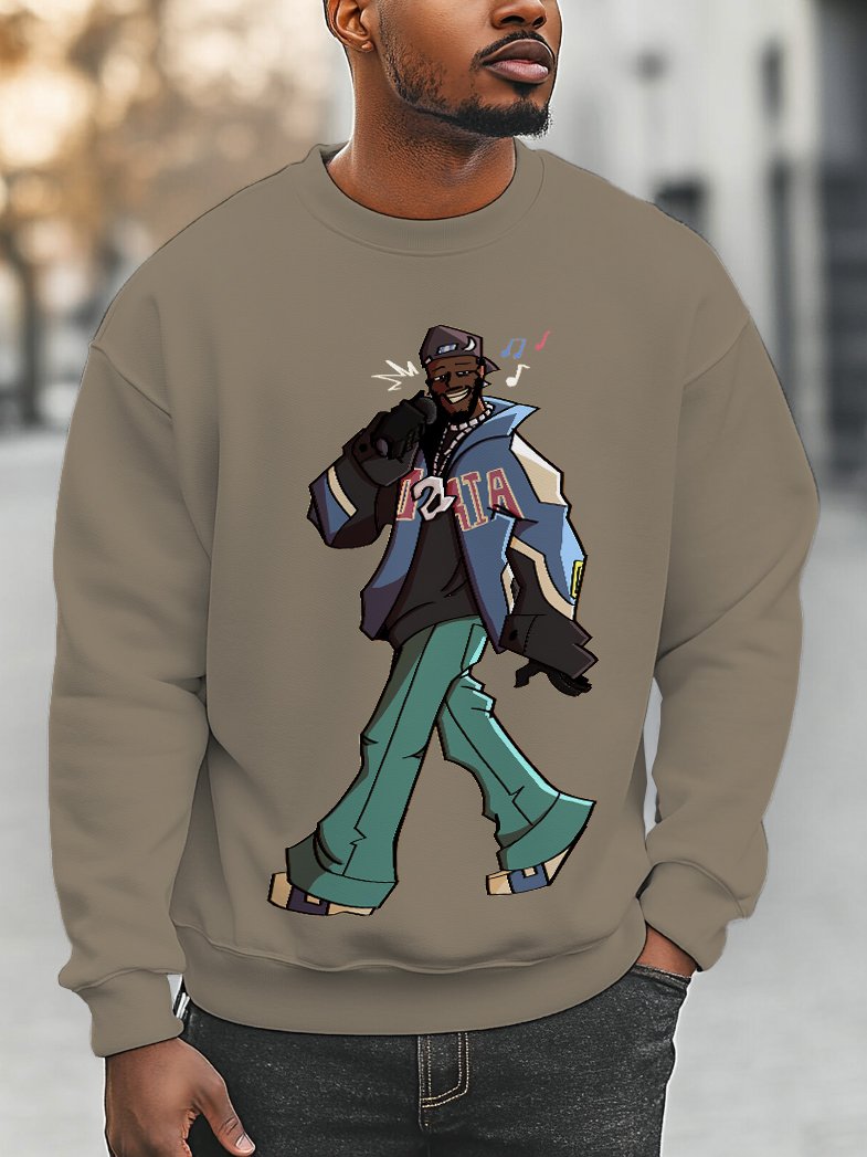 Men's Cartoon Graffiti Rock Guitar Playing Print Cotton Casual Sweatshirt