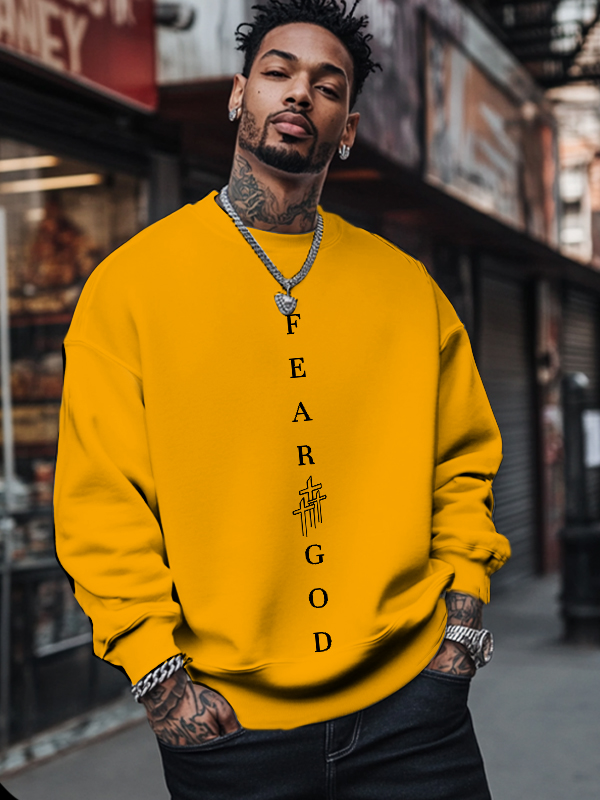 Men's Fear Of God Slogan Print Cotton Casual Sweatshirt
