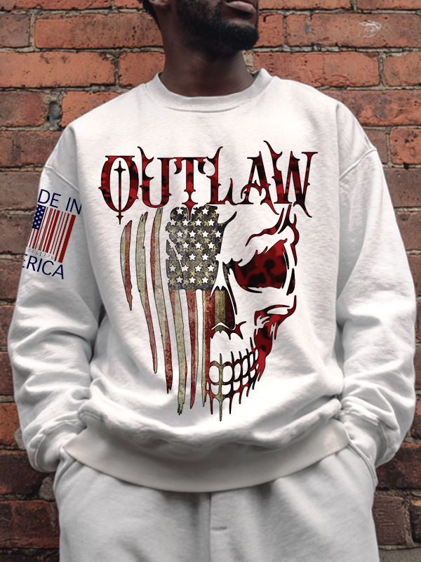 Men's USA Outlaw Skull Flag Blood Camo Distressed Art Print Cotton Casual Sweatshirt