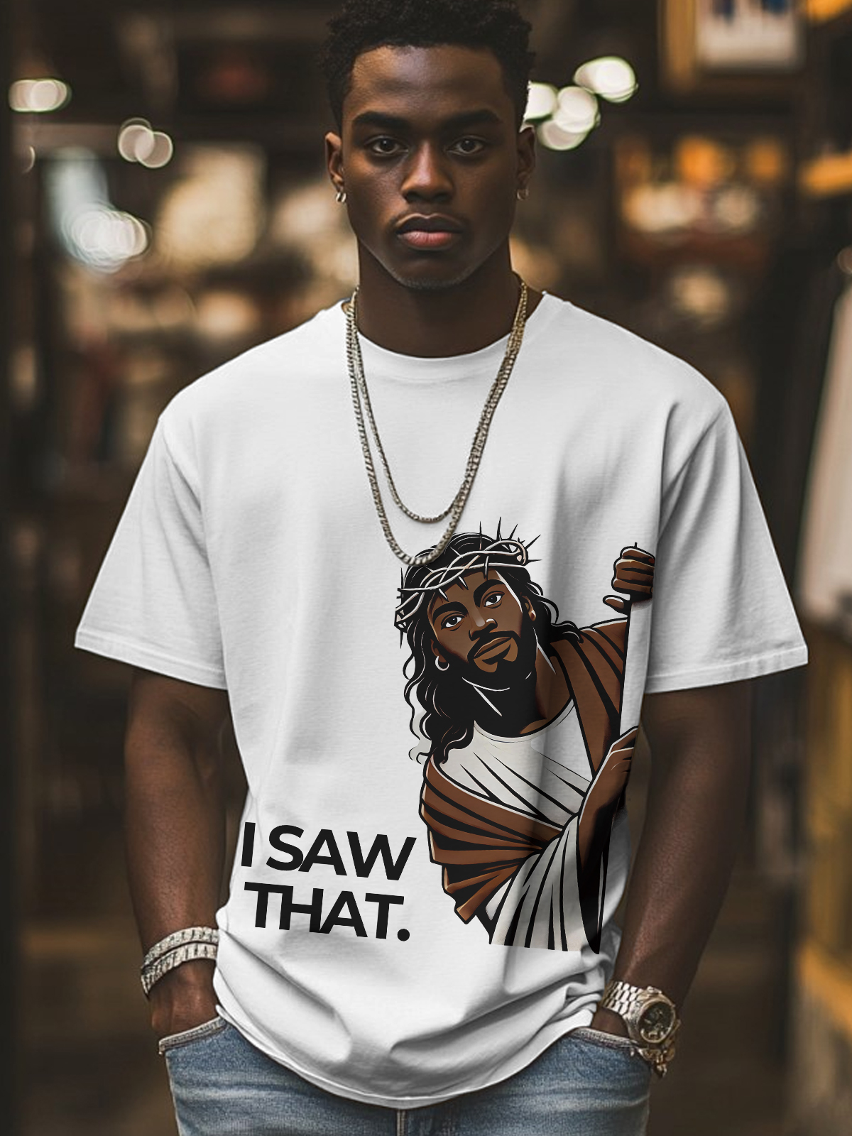 Men's I Saw That Jesus Print Cotton Casual T-Shirt