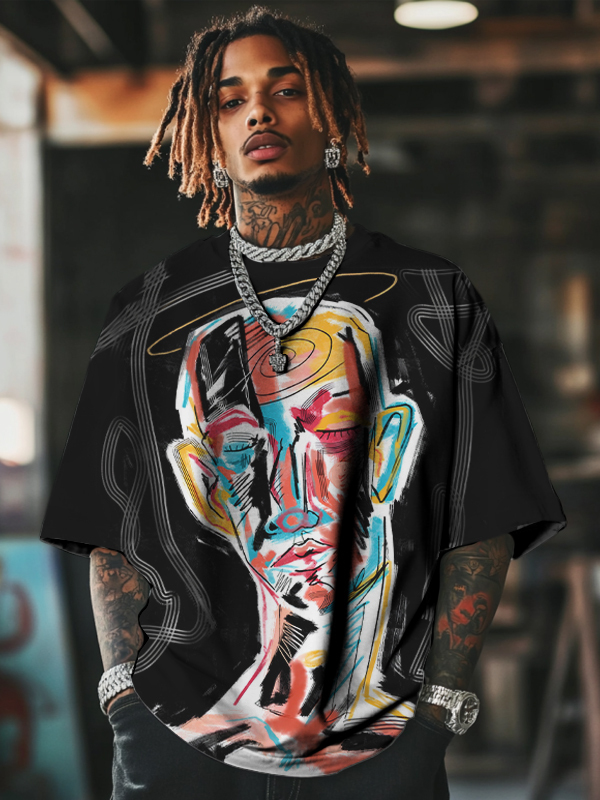 Men's Abstract Man Colorful Portrait Art Print T-Shirt