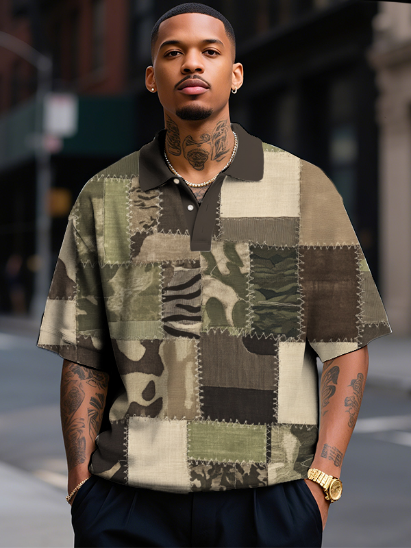 Men's Camouflage Patchwork Print Half Button Shirt