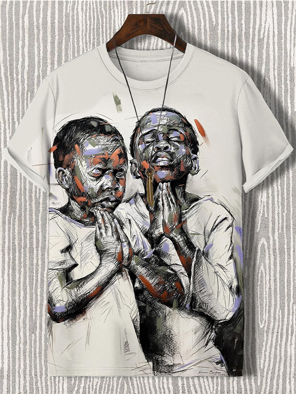 Men's Black Children Praying Art Print T-Shirt