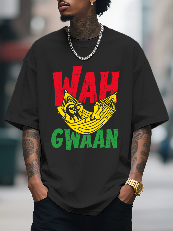 Men's Wah Gwaan Funny Jamaican Reggae Music Print Cotton Casual T-Shirt