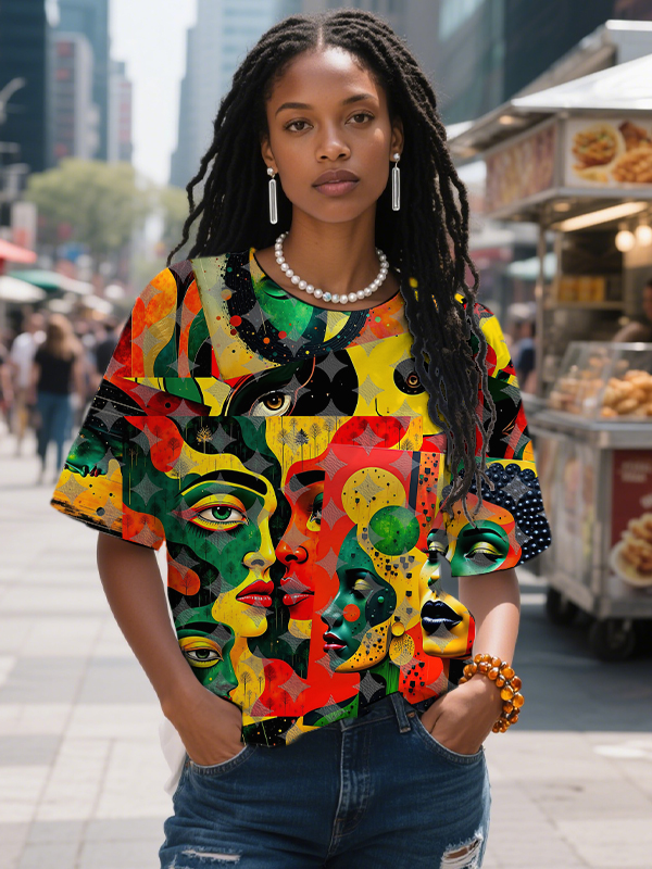 Women's Abstract Colorful African Woman Face Art Print Casual T-Shirt