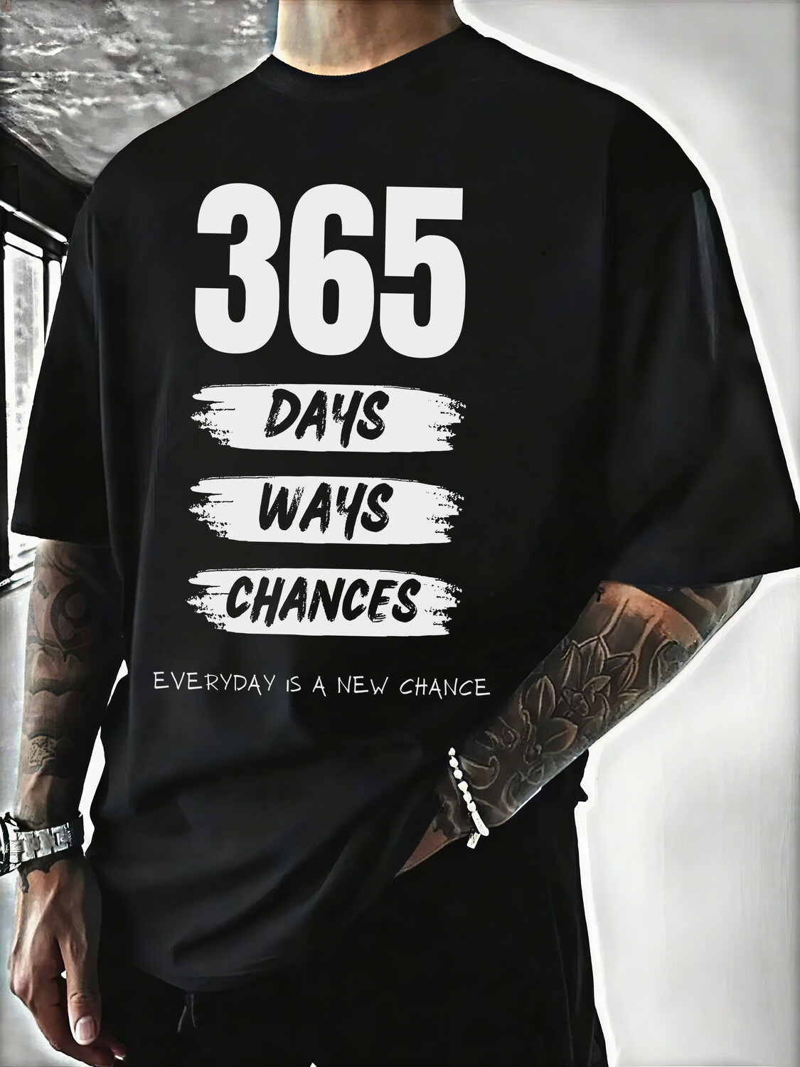 Men's 365 Days Ways Chances Everyday Is A New Chance Print Cotton Casual T-Shirt