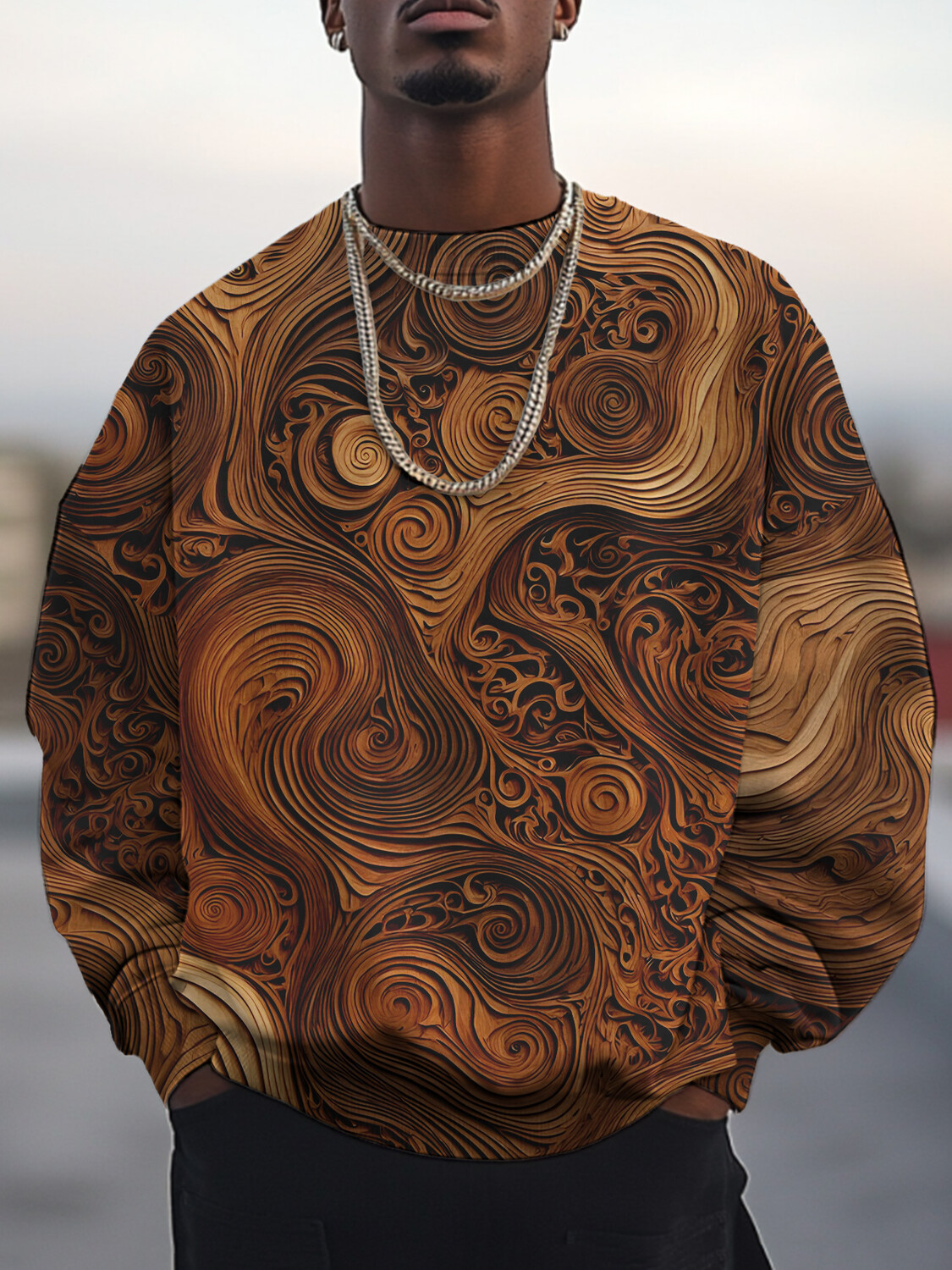 Men's 3D Wood Grain Wood Carving Art Print Casual Sweatshirt