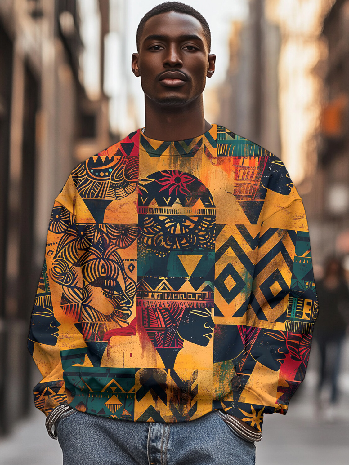 Men's African Tribal Ethnic Patterns Abstract Geometry Art Print Casual Sweatshirt
