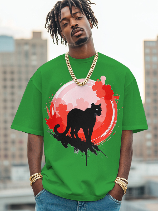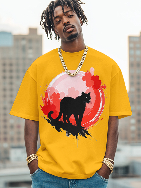 Men's Black Panther Art Print Cotton Casual T-Shirt