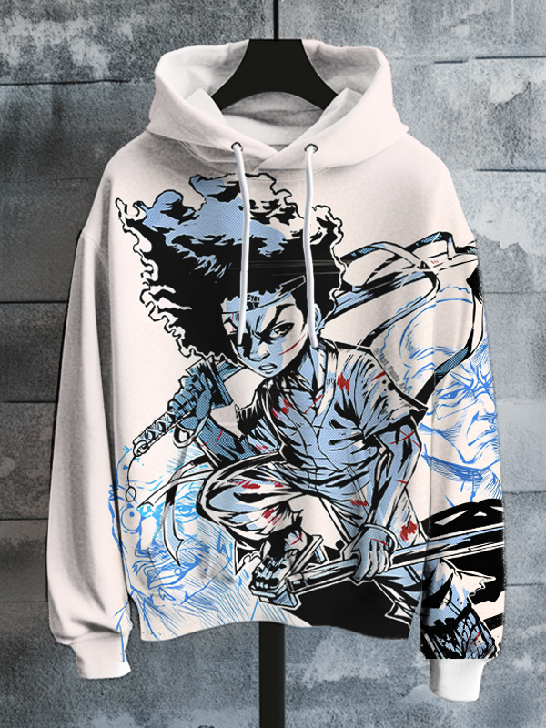 Men's Cartoon Anime Sword Wielding Samurai Boy Art Print Hooded Sweatshirt