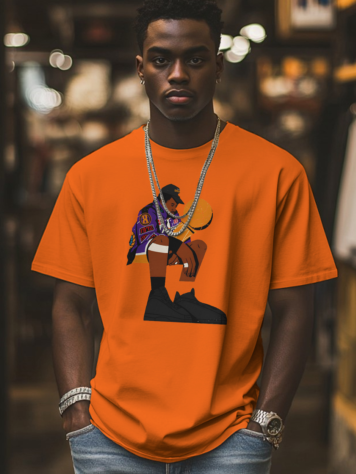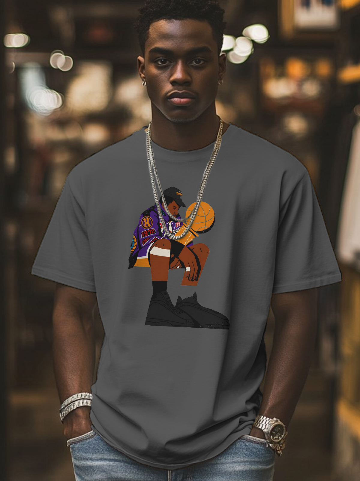 Men's Cartoon Basketball Player Print Cotton Casual T-Shirt