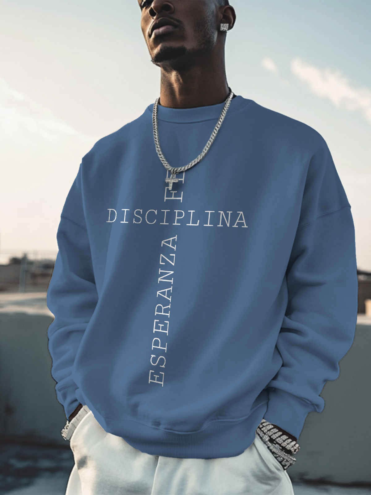 Men's Faith Discipline Hope Cross Pattern Art Print Cotton Casual Sweatshirt