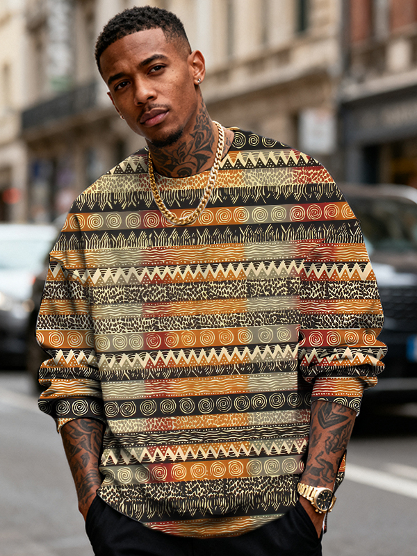 Men's Geometric Color Block Vortex Ethnic Pattern Art Print Casual Sweatshirt