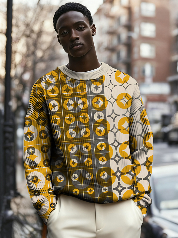 Men's Geometric Symmetrical Pattern All Over Print Knit Sweatshirt