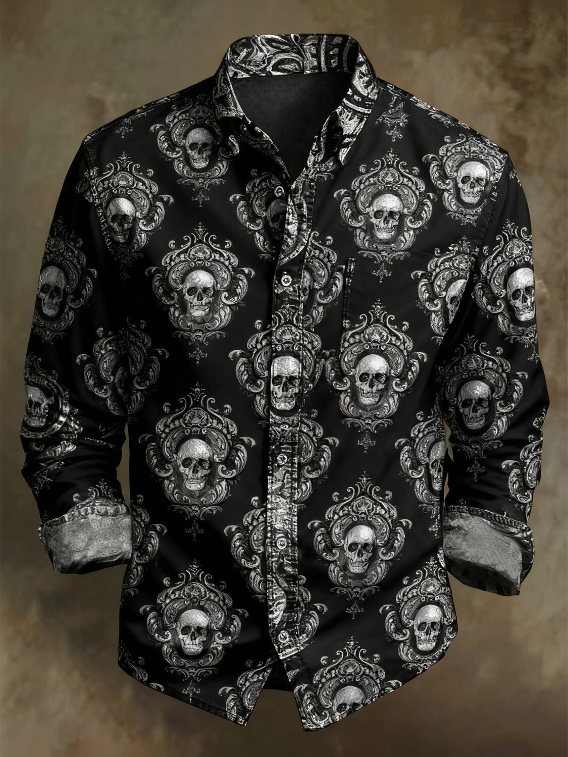 Men's Halloween Gothic Skull Print Long Sleeve Shirt