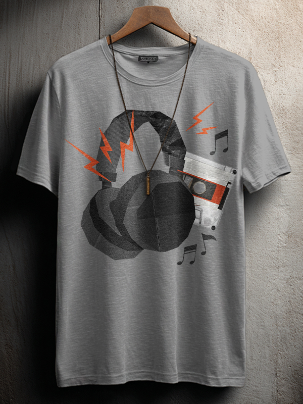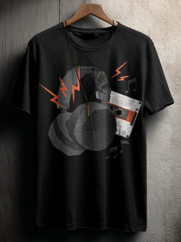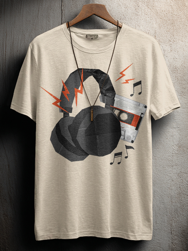 Men's Headphones Cassette Music Note Print Cotton Casual T-Shirt