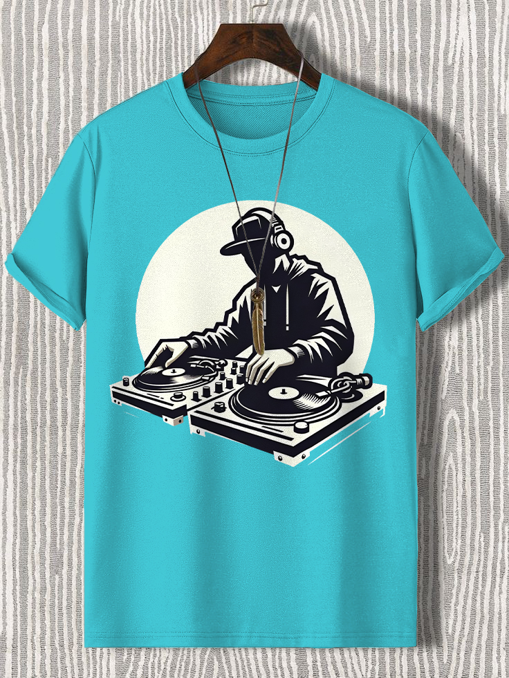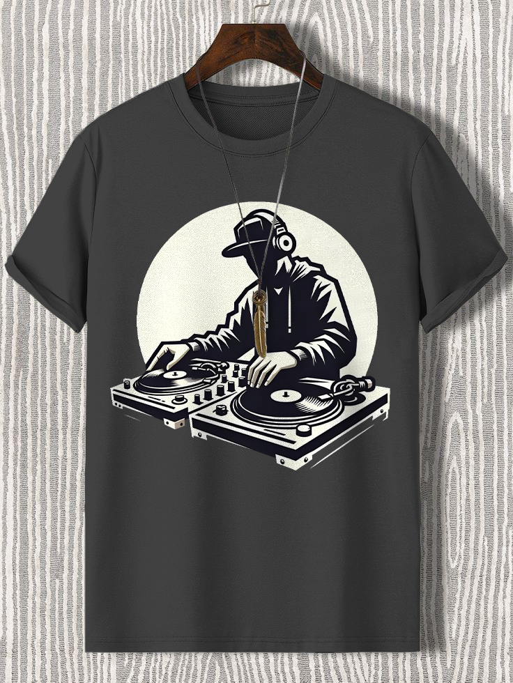 Men's Hip Hop Dj Retro Print Cotton Casual T-Shirt