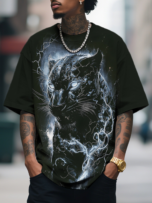 Men's Lightning And Panther Print Casual T-Shirt