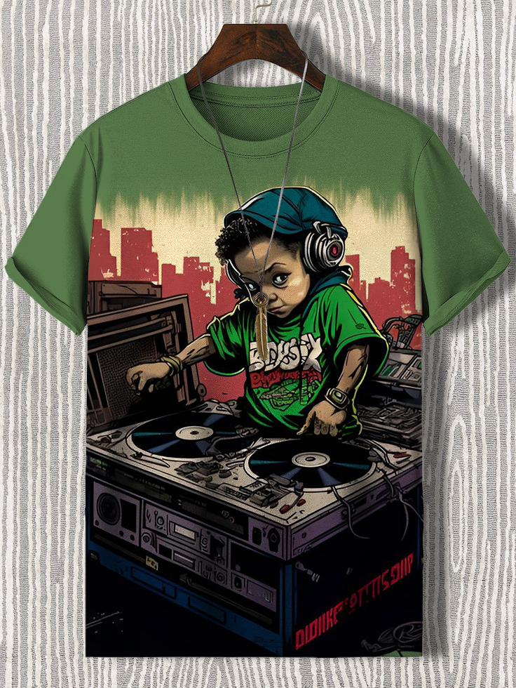 Men's Little Boy DJ Mix Illustration Print Casual T-Shirt