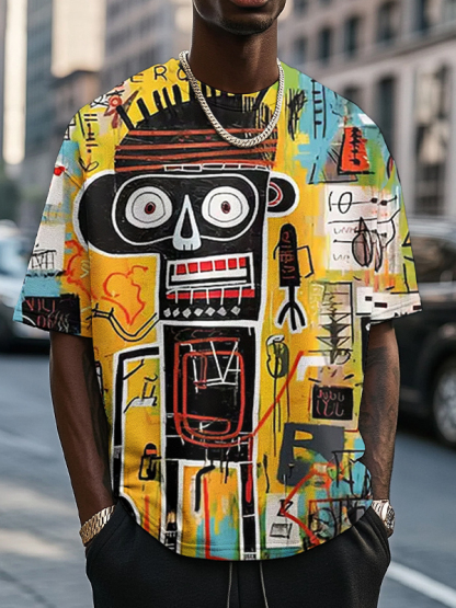 Men's Multicolor Graffiti Abstract Art Print Casual T-Shirt