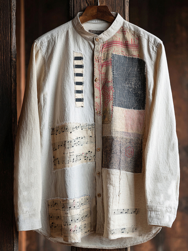 Men's Music Elements Geometric Patchwork Art Print Long Sleeve Shirt