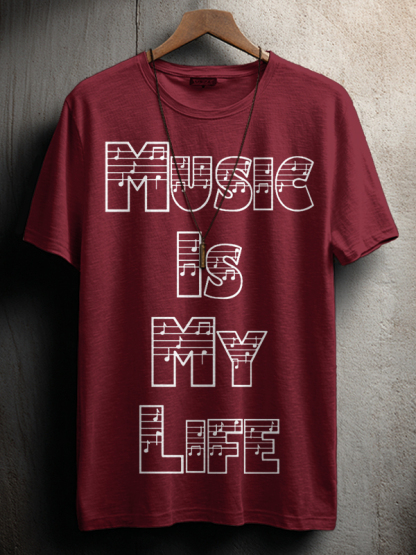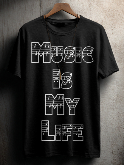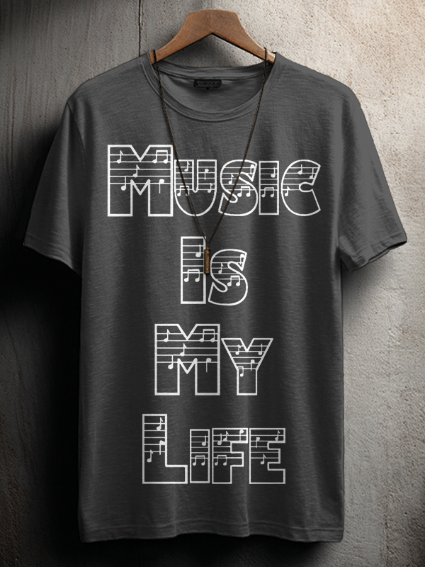 Men's Music Is My Life Print Cotton Casual T-Shirt