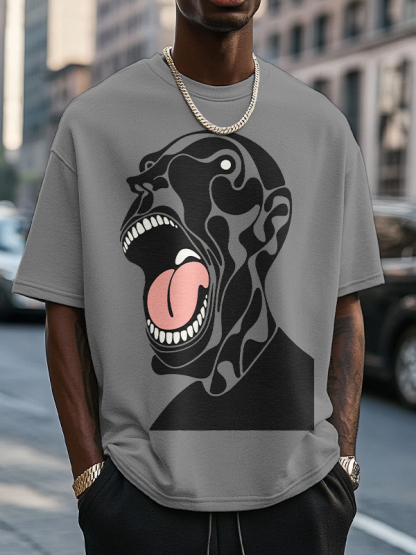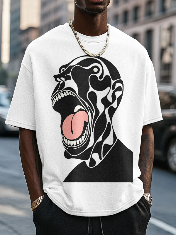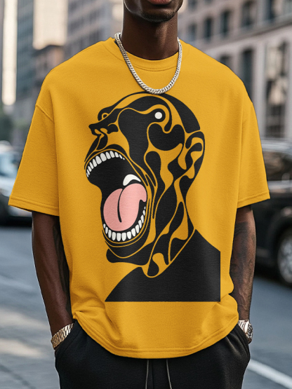 Men's Shouting Man Print Cotton Casual T-Shirt