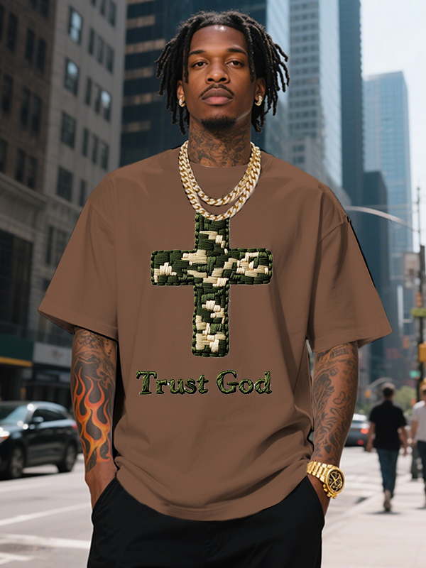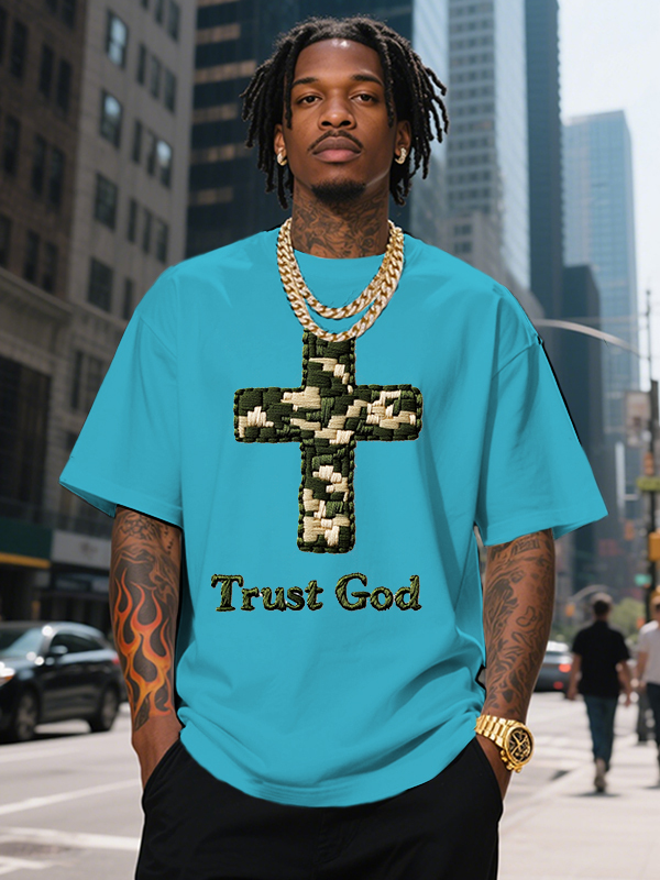 Men's Trust God Cross Print Cotton Casual T-Shirt